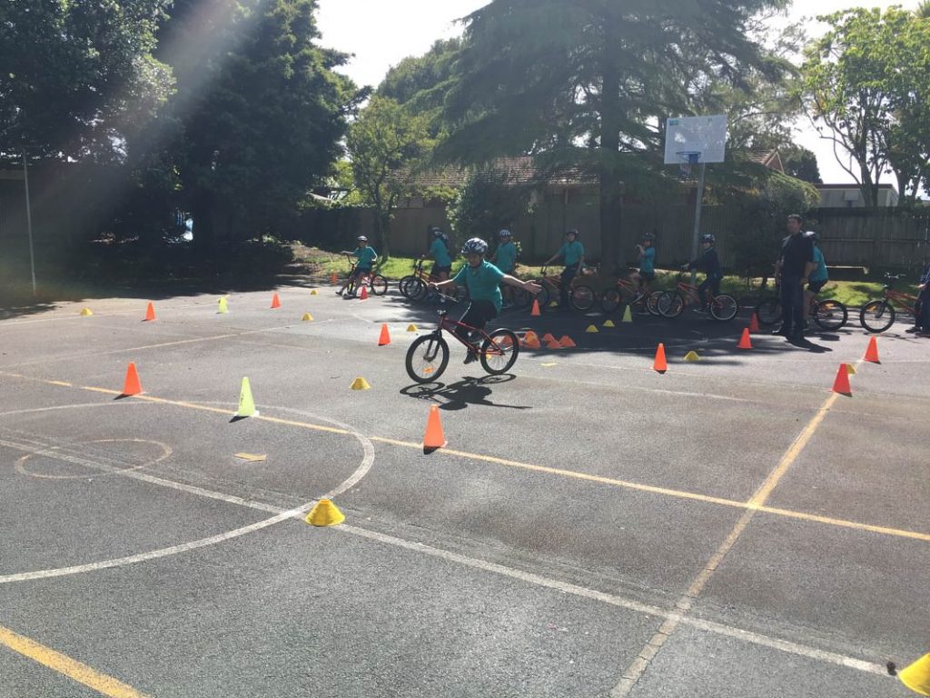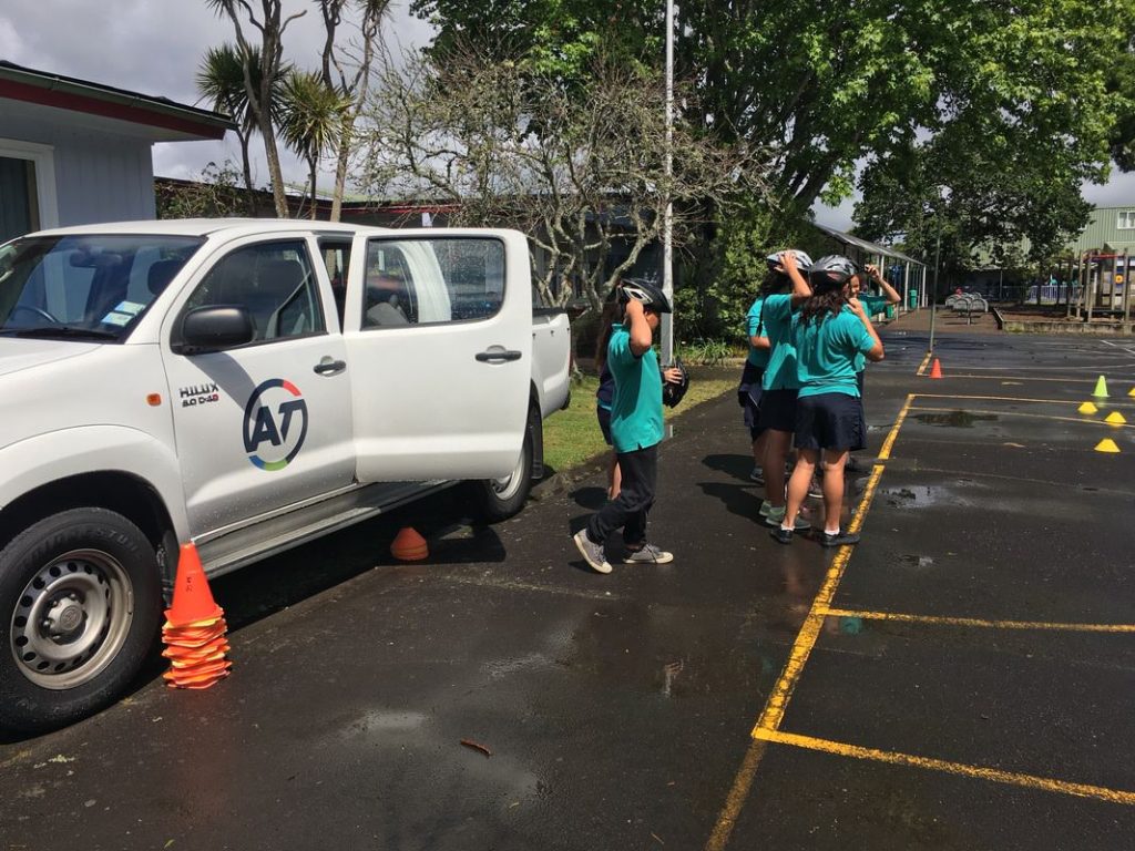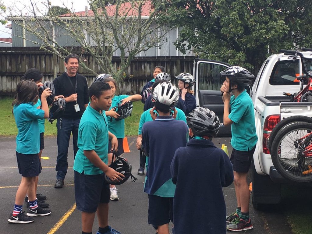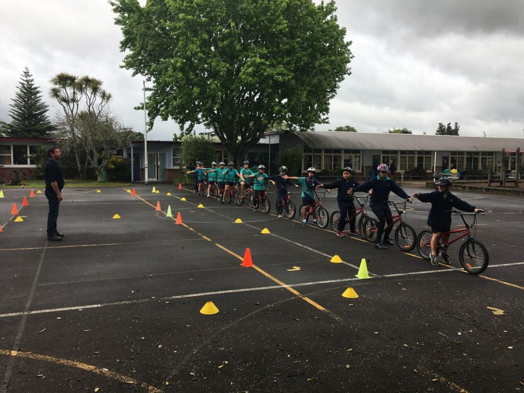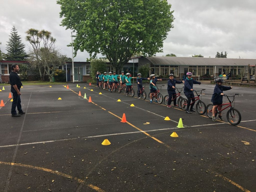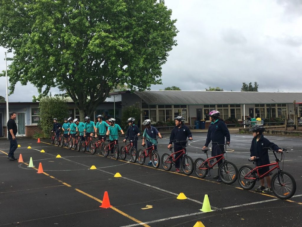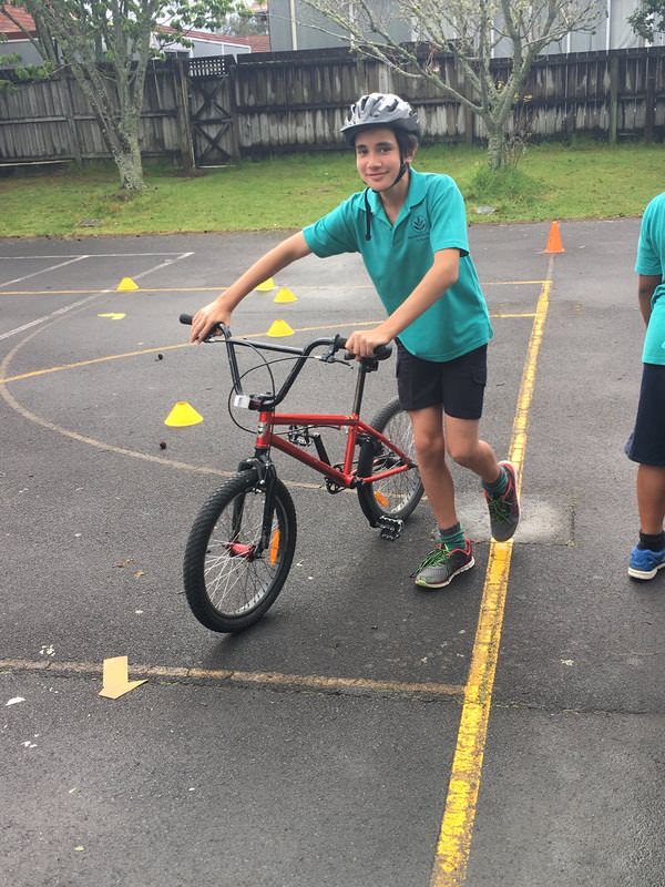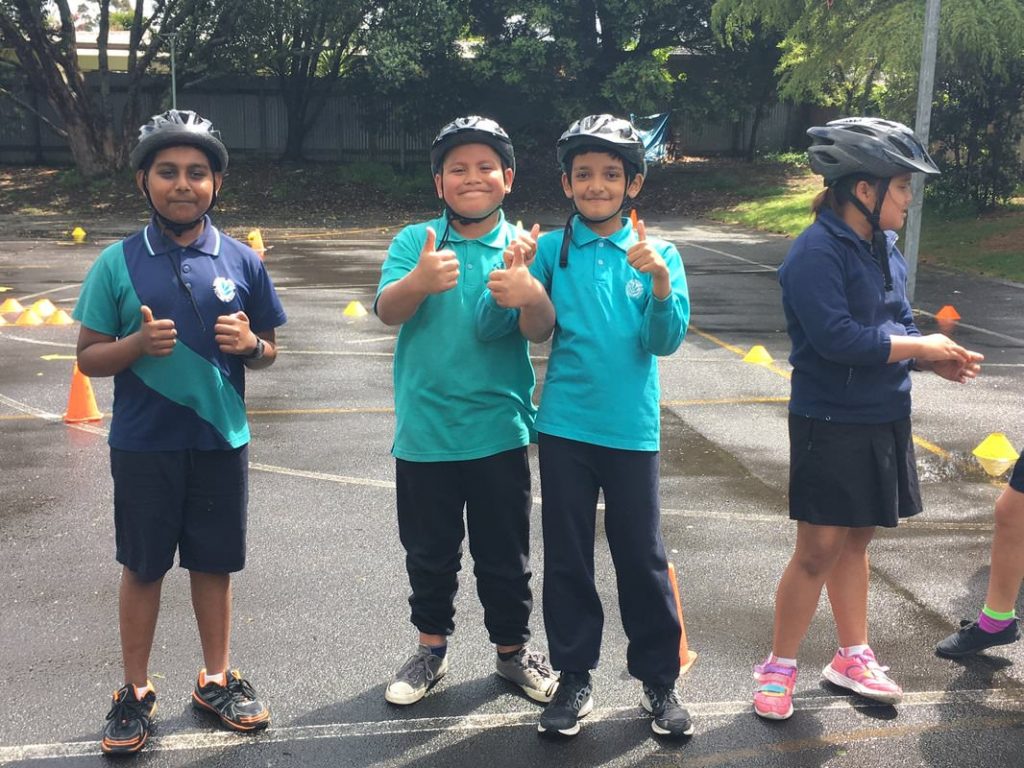 We are learning about road safety whilst riding, wearing correctly fitting helmets and signalling.